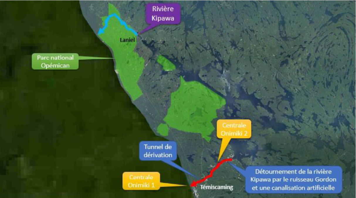Le projet Onimiki, élaboré depuis plus de 20 ans, a connu plusieurs formulations. Sa version actuelle turbinerait les eaux de la rivière Kipawa par un détournement vers le ruisseau Gordon, produisant par deux centrales une quantité d’énergie estimée à 42 MW. Les détails du projet sont cependant difficiles à obtenir et, considérant l’échéance prochaine de l’appel d’offres d’Hydro-Québec et le manque d’échange avec les promoteurs du projet Onimiki, divers acteurs du territoire ont soumis fin 2021 une liste de préoccupations préliminaires en lien avec le projet.